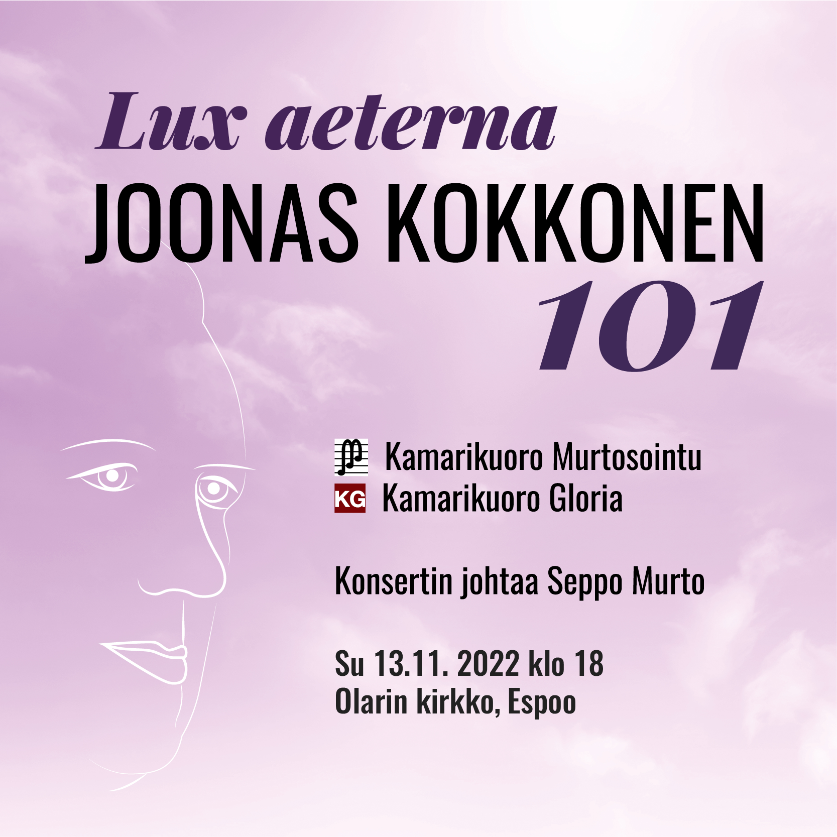 Kamarikuoro Murtosointu ja Kamarikuoro Gloria esittävät säveltäjä Joonas Kokkosen syntymän 101-vuotisjuhlavuoden kunniaksi Joonas Kokkosen valoisan ja lohdullisen Requiemin urkusäestyksellä.